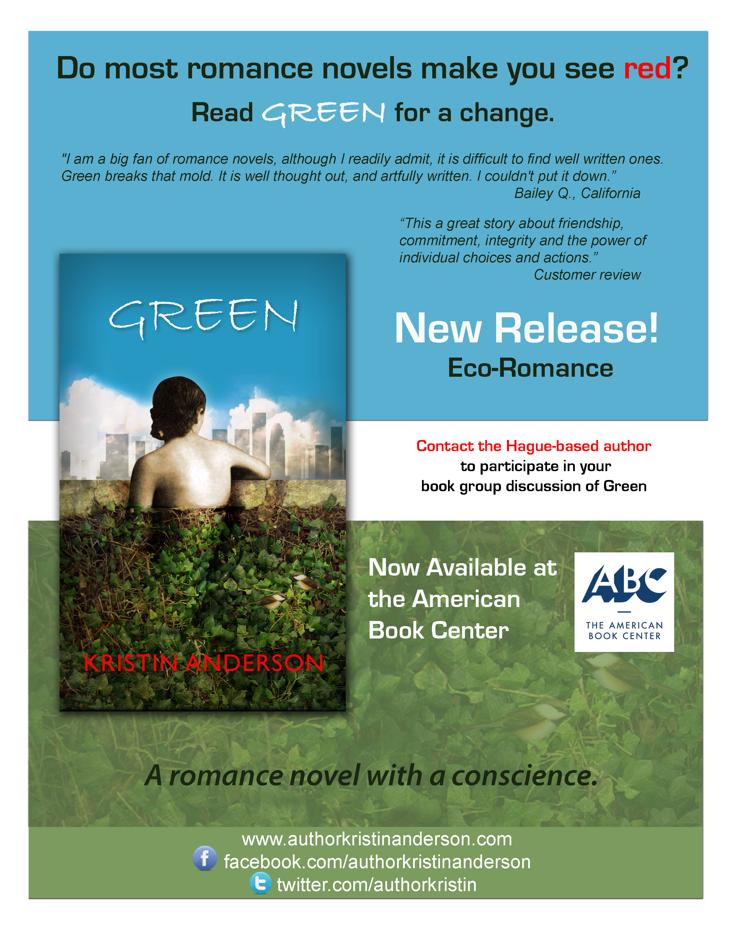 I awoke Monday morning before the alarm went off with a strange sensation; energy. I had slept well three nights in a row, and was experiencing a clarity of mind I hadn’t even realized was missing. I was focused and productive at work, I understood almost all of the Dutch that was thrown my way, and I was pro-active when I got home. I finished customizing a flyer my friend Antara had designed for my book Green and headed downtown to drop it at ABC Bookstore in The Hague where multiple copies of my novel GREEN are now sitting on a shelf, waiting for their new owners to come fetch them.
