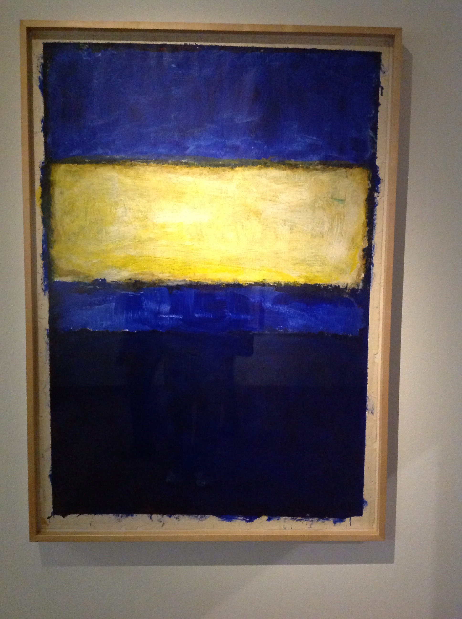 Or how about the happiness and warmth I felt BEFORE I listened to the commentary about this painting. It was one of Rothko’s smaller canvases that he painted during a period of depression, right before he swallowed pills and slit his wrists, ending his troubled life. So much for the happiness that had enveloped me.