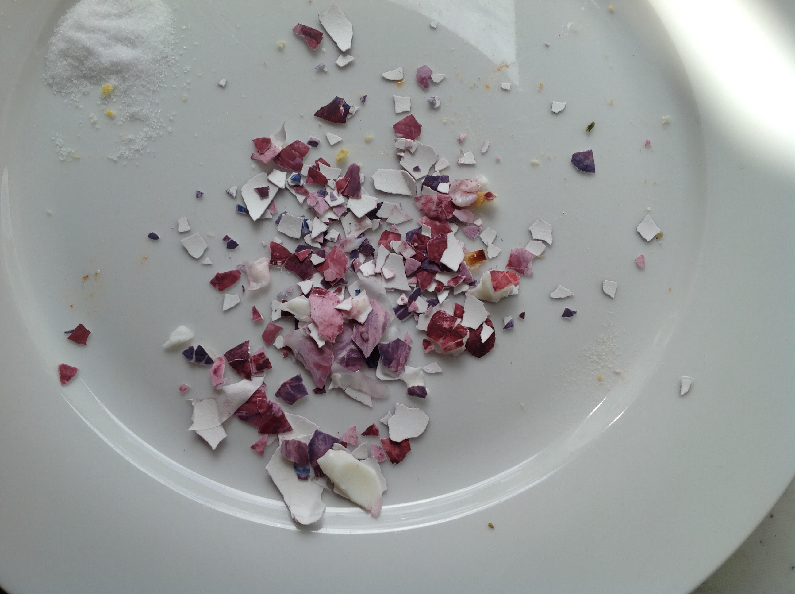 Had it been any other time of year, the discarded egg shells would have offered up a monochrome pallette of white or brown, and I wouldn’t have given them a second thought. Easter transformed the ordinary.