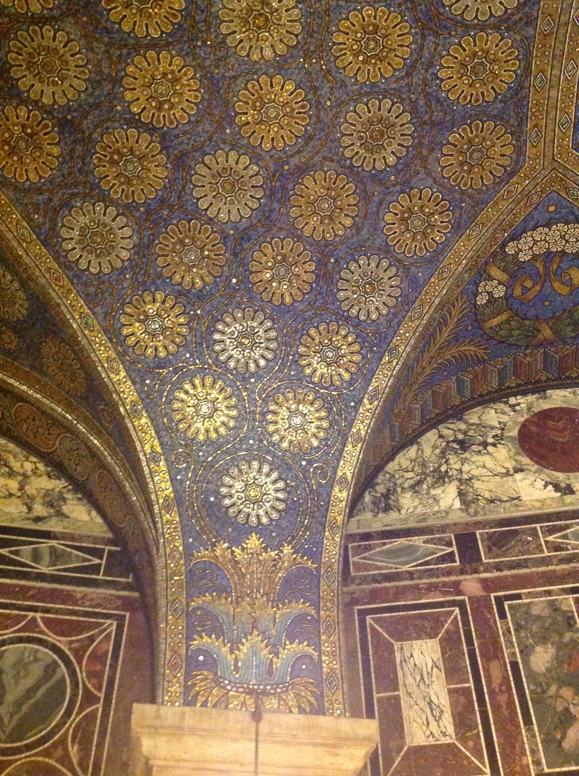 Many Catholic cathedrals I have visited have chaste marble or stone columns that seem to be intentionally subtle in color so as not to take away from the grandeur of the stain glass windows, marble statues, and golden chalices associated with Catholic mass. But clearly, it wasn’t always that way.