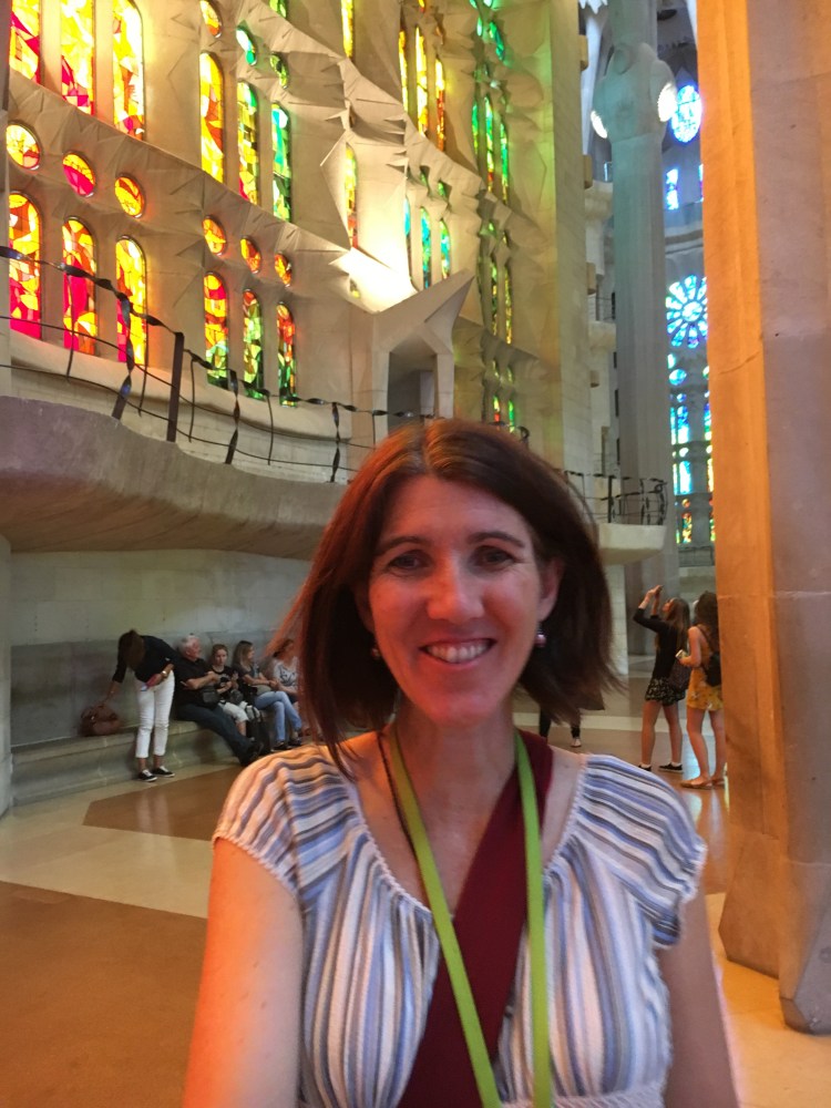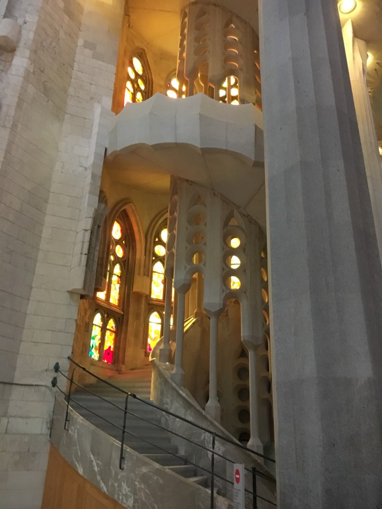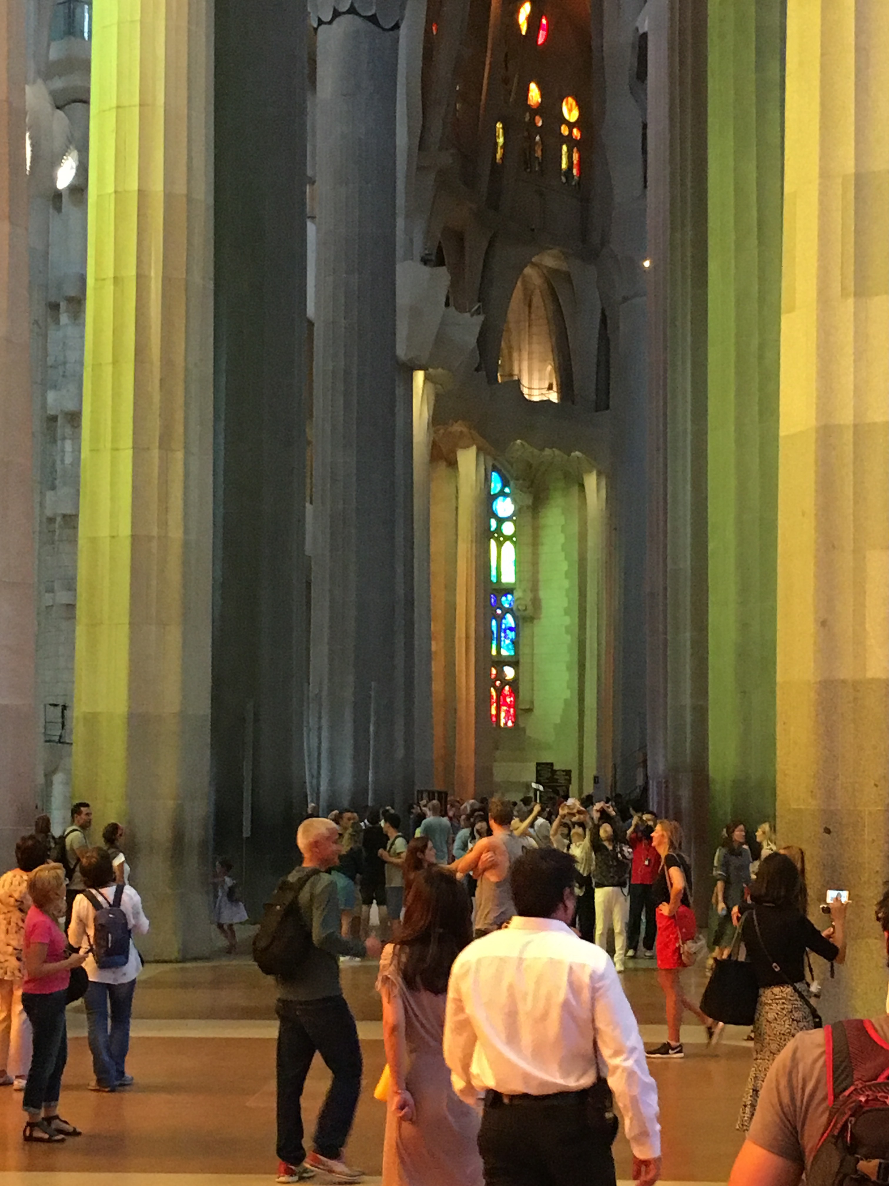 As she edges inside, the hushed murmurs of the crowd convey awe and wonder that mimics her own. The building is spacious, filled with light. Off-white columns rise skyward like trees. Flower-shaped stained-glass windows bathe the walls in gold, green and orange. The vaulted nave soars forty-five meters high. She has seen this sacred church in books, read about it online, but nothing could have prepared her for this moment.