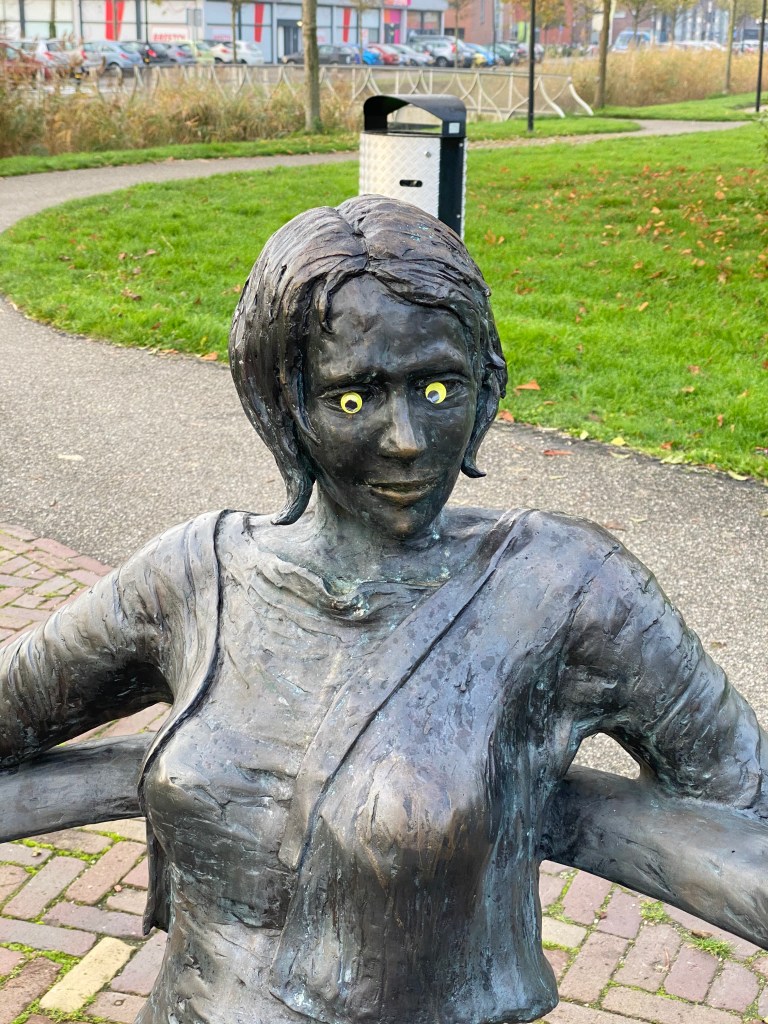 I can’t quite picture a seventy-nine-year-old breaking out the goofy eyes and sticking them onto a sculpture. I could be wrong. But looking at them now, this man and woman, they have come more alive, as if the words are on the tips of their metal tongues, just waiting to spill forth. I bet if you wait long enough, they’ll talk.